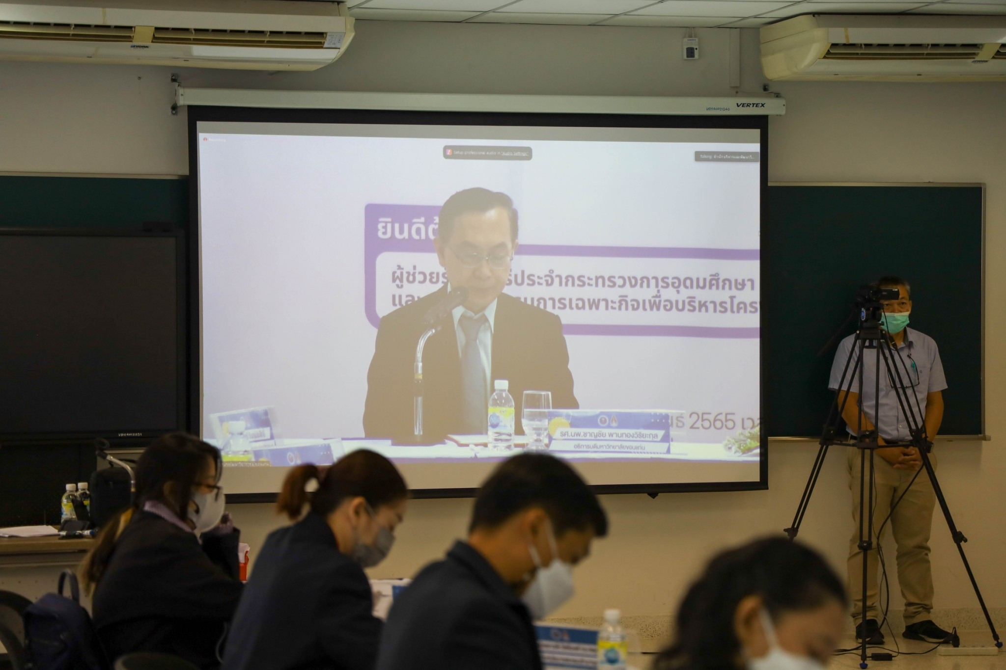 รองศาสตราจารย์ นพ. ชาญชัย พานทองวิริยะกุล อธิการบดีมหาวิทยาลัยขอนแก่น กล่าวต้อนรับคณะติดตามโครงการ ฯ ว่า โครงการผลิตบัณฑิตพันธุ์ใหม่เพื่อสร้างกำลังคนที่มีสมรรถนะสูง สำหรับอุตสาหกรรม New Growth Engine ตามนโยบาย Thailand 4.0” ในวันนี้ ซึ่งโครงการต้องการสร้างฐานการพัฒนาการศึกษาระดับอุดมศึกษาแห่งอนาคตโดยปรับเปลี่ยนรูปแบบการผลิตบัณฑิตและสร้างต้นแบบของหลักสูตรและการเรียนการสอน โดยเน้นการปรับเปลี่ยนเนื้อหาสาระ โครงสร้างหลักสูตร และกระบวนการจัดการเรียนการสอนสร้างประสบการณ์การเรียนรู้ด้วยการปฏิบัติในสภาพจริงเป็นสำคัญ พัฒนาการศึกษาเพื่อสร้างให้ผู้เรียนมีสมรรถนะและศักยภาพสูง รวมทั้งการร่วมมือกับสถานประกอบการหรือภาคอุตสาหกรรมในการผลิตบัณฑิตและกำลังคนและการปฏิรูปอุดมศึกษาไทย ซึ่งเป็นแนวทางที่มหาวิทยาลัยขอนแก่นได้กำหนดเป็นนโยบายการผลิตบัณฑิต พ.ศ. 2565 – 2569 และยุทธศาสตร์ด้านการปรับเปลี่ยนการศึกษา (Education transformation)