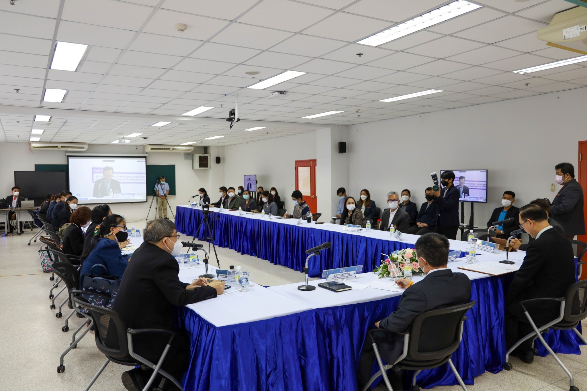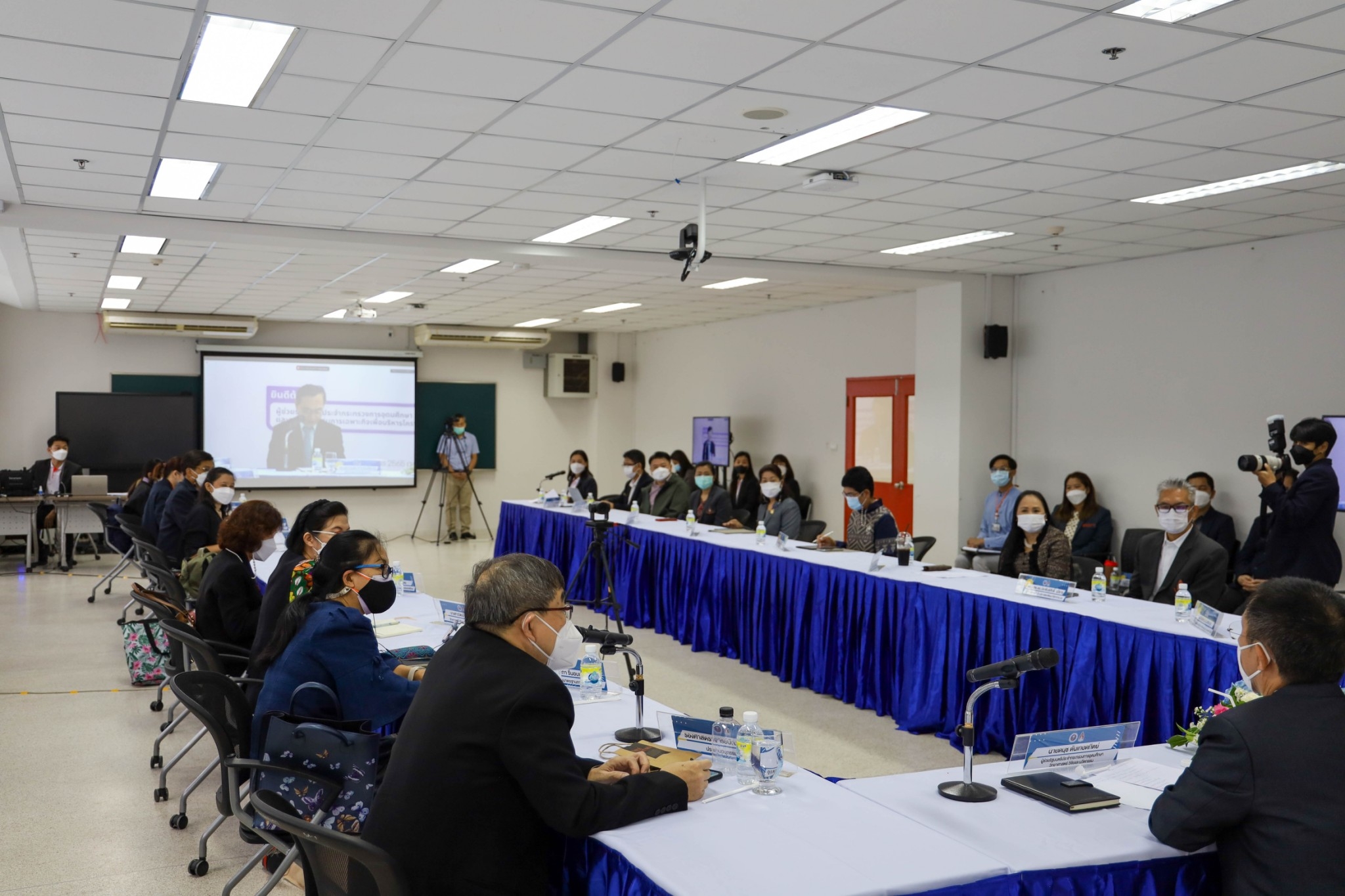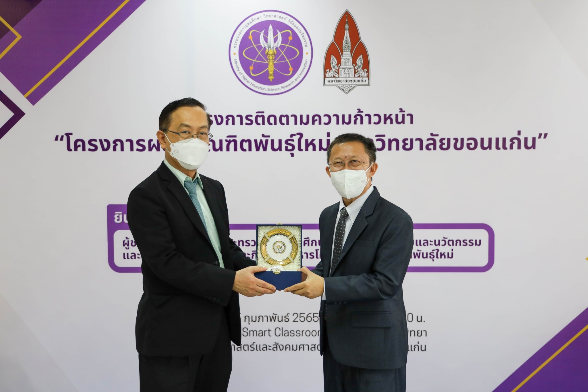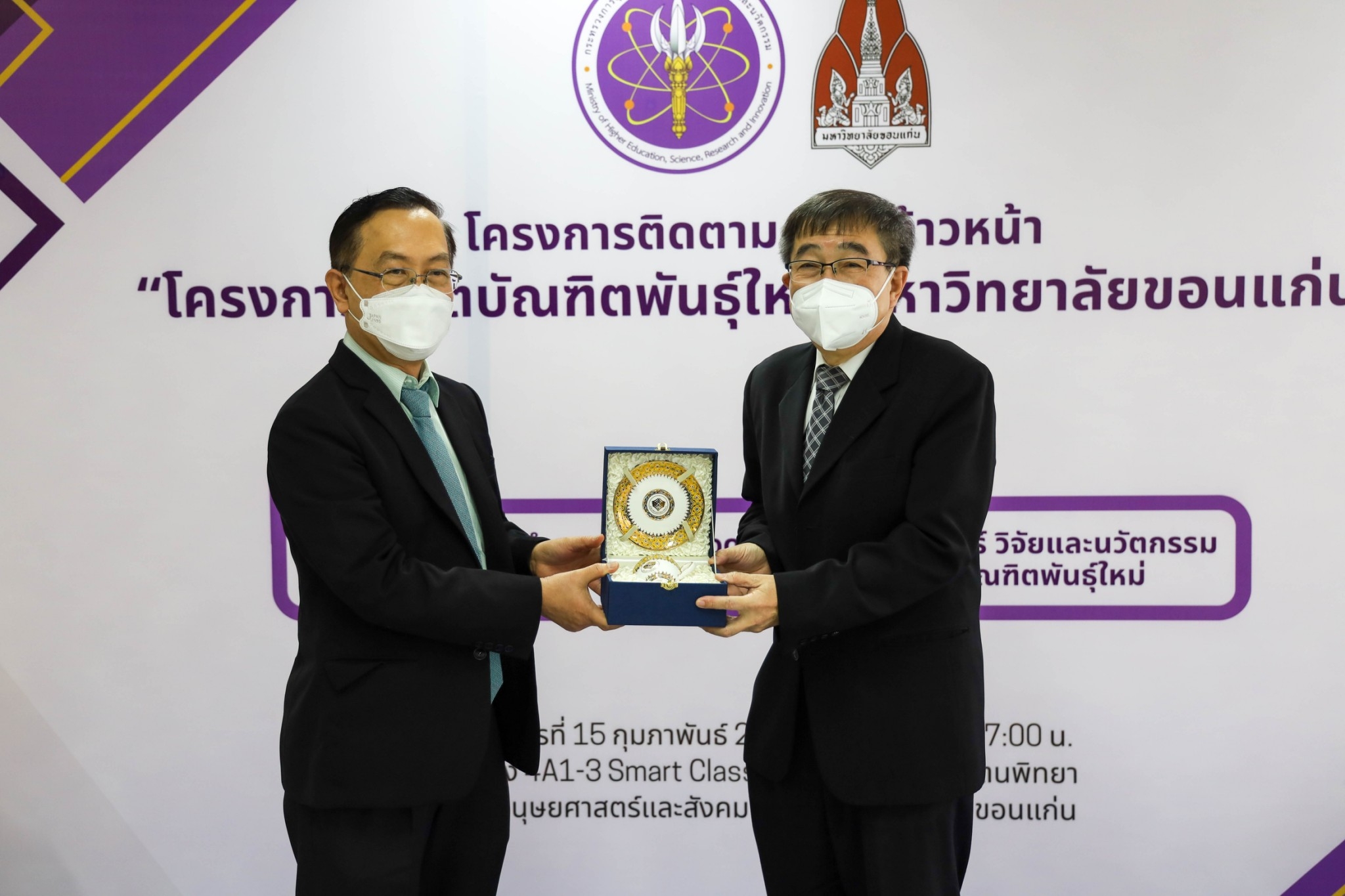 เมื่อวันที่ 15 กุมภาพันธ์ 2565 เวลา 08:30 มหาวิทยาลัยขอนแก่น นำโดย รองศาสตราจารย์ นพ. ชาญชัย พานทองวิริยะกุล อธิการบดีมหาวิทยาลัยขอนแก่น (มข.) พร้อม คณะผู้บริหารมหาวิทยาลัย ร่วมต้อนรับ ดร.ดนุช ตันเทอดทิตย์ ผู้ช่วยรัฐมนตรีประจำกระทรวงการอุดมศึกษา วิทยาศาสตร์ วิจัยและนวัตกรรม ( อว.) ศาสตราจารย์ ดร.สัมพันธ์ ฤทธิเดช เลขาธิการคณะกรรมการการอุดมศึกษา รองศาสตราจารย์ ดร.บัณฑิต ทิพากร ประธานคณะอนุกรรมการเฉพาะกิจเพื่อบริหารโครงการผลิตบัณฑิตพันธุ์ใหม่ฯ ในงาน โครงการติดตามความก้าวหน้า “โครงการผลิตบัณฑิตพันธุ์ใหม่ มหาวิทยาลัยขอนแก่น” ณ ห้อง 4A1-3 Smart Classroom ชั้น 4 อาคารรัตนพิทยา คณะมนุษยศาสตร์และสังคมศาสตร์ มหาวิทยาลัยขอนแก่น โดยมีเจ้าหน้าที่ ๕ณาจารย์ ร่วมงานกว่า 50 คน ภายใต้มาตรการป้องกันโรคระบาดอย่างเคร่งครัด