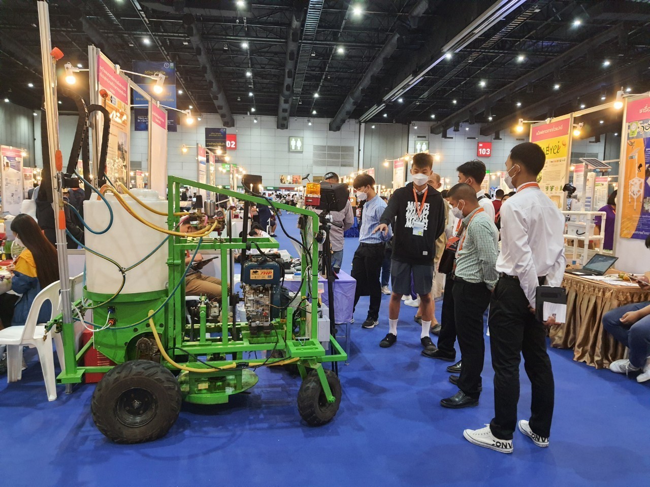 โดยผลงาน “รถตัดหญ้าและพ่นสารทางชีวภาพ โดยใช้กลไกการบังคับด้วยคลื่นวิทยุสำหรับการแก้ไขปัญหาการปลูกทุเรียนของเกษตรกร” (พัฒนาการทำงานเป็นแบบอัตโนมัติ Autopilot ที่ผนวกกับ GPS Navigation System Control) ช่วยลดระยะเวลาในการกำจัดวัชพืชและฉีดพ่นสารชีวภาพหรือปุ๋ยน้ำหมักชีวภาพ ช่วยลดค่าใช้จ่าย ลดค่าแรงงานคน ในการดูแลบำรุงสวนทุเรียน ทำให้คว้า รางวัลรองชนะเลิศ อันดับ 1 ในระดับมัธยมศึกษา กลุ่มการเกษตร ได้รับเหรียญรางวัล Gold เงินรางวัลจำนวน 40,000 บาท พร้อมเกียรติบัตรประกาศเกียรติคุณ มอบรางวัลโดย ดร.วิภารัตน์ ดีอ่อง ผู้อำนวยการสำนักการวิจัยแห่งชาติ ประธานในพิธี และเมื่อวันที่ 21 กุมภาพันธ์ 2565 รศ.ดร.สุมาลี ชัยเจริญ คณบดีคณะศึกษาศาสตร์ ได้ร่วมมอบช่อดอกไม้แสดงความยินดีและให้โอวาทแก่นักเรียนผู้ประดิษฐ์คิดค้นและอาจารย์ที่ปรึกษา ผลงานนวัตกรรมสิ่งประดิษฐ์นี้ เป็นผลงานการวิจัย ออกแบบและพัฒนาลงสู่ชุมชน โดยกลุ่มนักเรียนที่มีความสนใจทางด้าน การออกแบบเทคโนโลยี การเขียนโปรแกรมภาษาคอมพิวเตอร์และงานช่างอิเล็กทรอนิกส์ ของโรงเรียนสาธิตมหาวิทยาลัยขอนแก่น ฝ่ายมัธยมศึกษา (มอดินแดง) ร่วมกับคณาจารย์ ผู้เชี่ยวชาญที่คอยให้คำปรึกษา