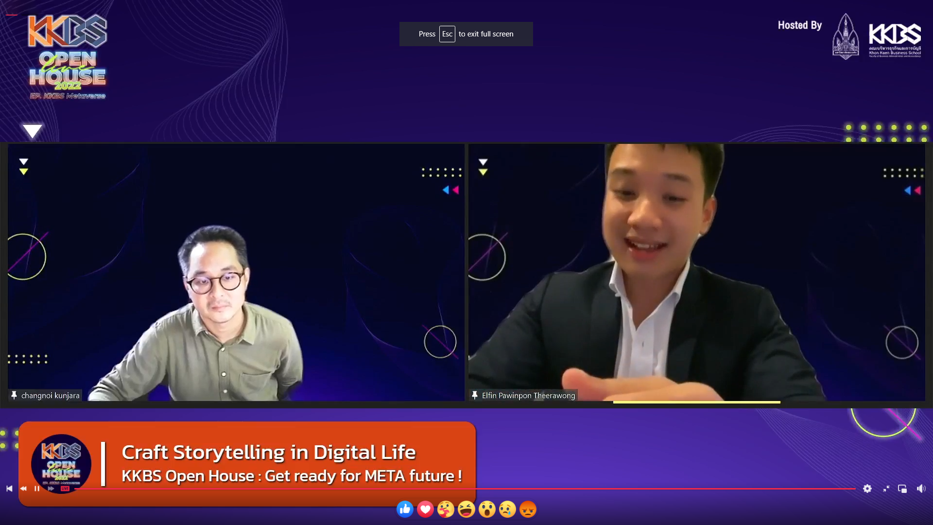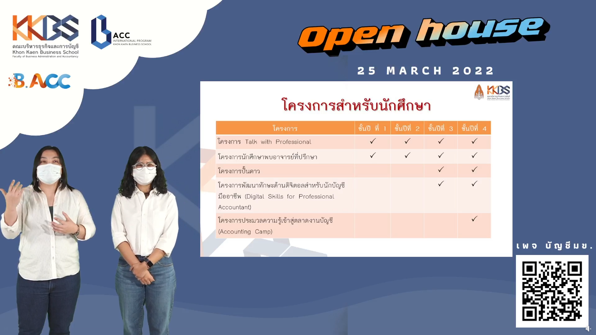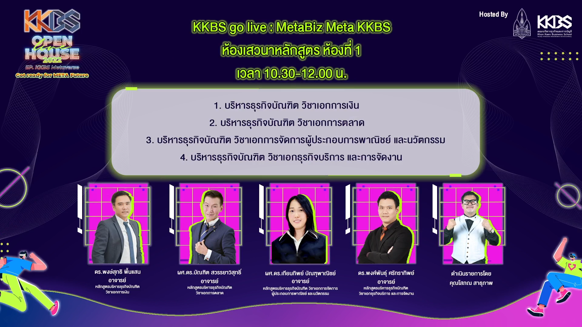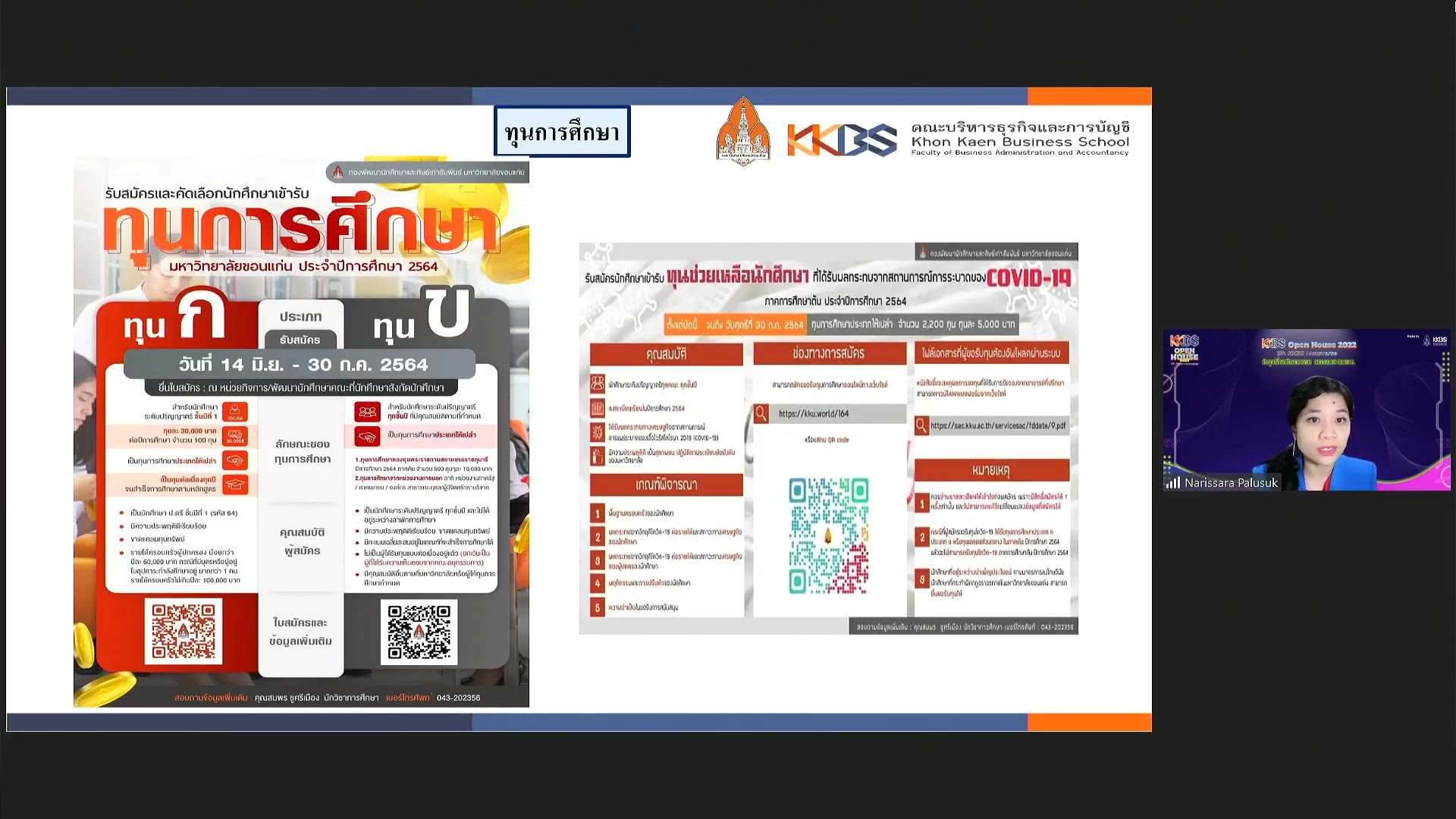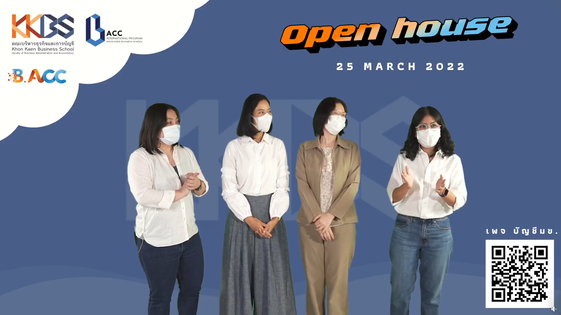เมื่อวันที่ 25 มีนาคม 2565 ที่ผ่านมา คณะบริหารธุรกิจและการบัญชี มหาวิทยาลัยขอนแก่น จัดกิจกรรมเปิดบ้านในรูปแบบออนไลน์ KKBS OPEN HOUSE 2022 ภายใต้ธีม KKBS Metaverse กิจกรรมเพื่อเปิดโอกาสให้กับนักเรียนระดับมัธยมศึกษา ได้ค้นหาข้อมูลเพื่อประกอบการตัดสินใจศึกษาต่อในระดับอุดมศึกษา ภายในงานโดยได้รับเกียรติจาก ผู้ช่วยศาสตราจารย์ ดร.ดลฤทัย โกวรรธนะกุล รองคณบดีฝ่ายวิชาการ กล่าวรายงานต่อ รองศาสตราจารย์ ดร.เพ็ญศรี เจริญวานิช คณบดีคณะบริหารธุรกิจและการบัญชี ประธานในงาน ต่อด้วยการบรรยายพิเศษในหัวข้อ Envision the Future with KKBS: เรียน KKBS ดีอย่างไร ทุนการศึกษา สิทธิประโยชน์ของนักศึกษา โดย อ.นริสรา พาลุสุข รองคณบดีฝ่ายพัฒนานักศึกษาและภาพลักษณ์องค์กร และ การบรรยายพิเศษในหัวข้อ The Cloud: Craft Storytelling in Digital Life โดย คุณปวินท์พนธ์ ถีระวงษ์ และ คุณช้างน้อย กุญชร ณ อยุธยา นอกจากนี้กิจกรรมของ KKBS OPEN HOUSE 2022 ยังอัดแน่นไปด้วยกิจกรรมที่ในแต่ละหลักสูตรของคณะฯ เตรียมมาให้กับผู้เข้าร่วมงานได้ร่วมสนุกผ่านระบบออนไลน์ตลอดทั้งวัน ซึ่งประกอบไปด้วย กิจกรรมเจาะลึกหลักสูตรระดับปริญญาตรีของคณะบริหารธุรกิจและการบัญชี ทั้งหลักสูตรภาษาไทยและนานาชาติ กิจกรรมการร่วมแลกเปลี่ยนประสบการณ์ในการเรียนด้านบริหารธุรกิจไลฟ์สไตล์ และเทรนด์อาชีพในอนาคตจากรุ่นพี่ศิษย์เก่า กิจกรรมมินิคอนเสิร์ตจากชมรมดนตรีนักศึกษาของคณะฯ