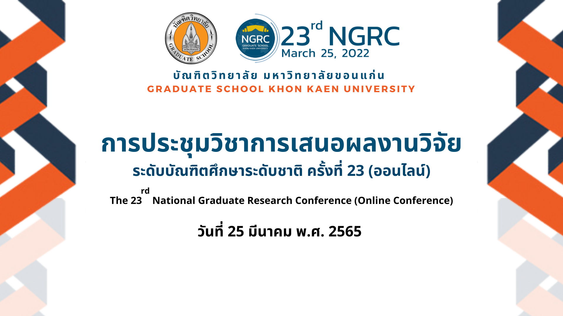 บัณฑิตวิทยาลัย มหาวิทยาลัยขอนแก่น จัดการประชุมวิชาการเสนอผลงานวิจัยระดับบัณฑิตศึกษาระดับชาติ ครั้งที่ 23 (The 23rd National Graduate Research Conference) ผ่านระบบออนไลน์ วันที่ 25 มีนาคม 2565