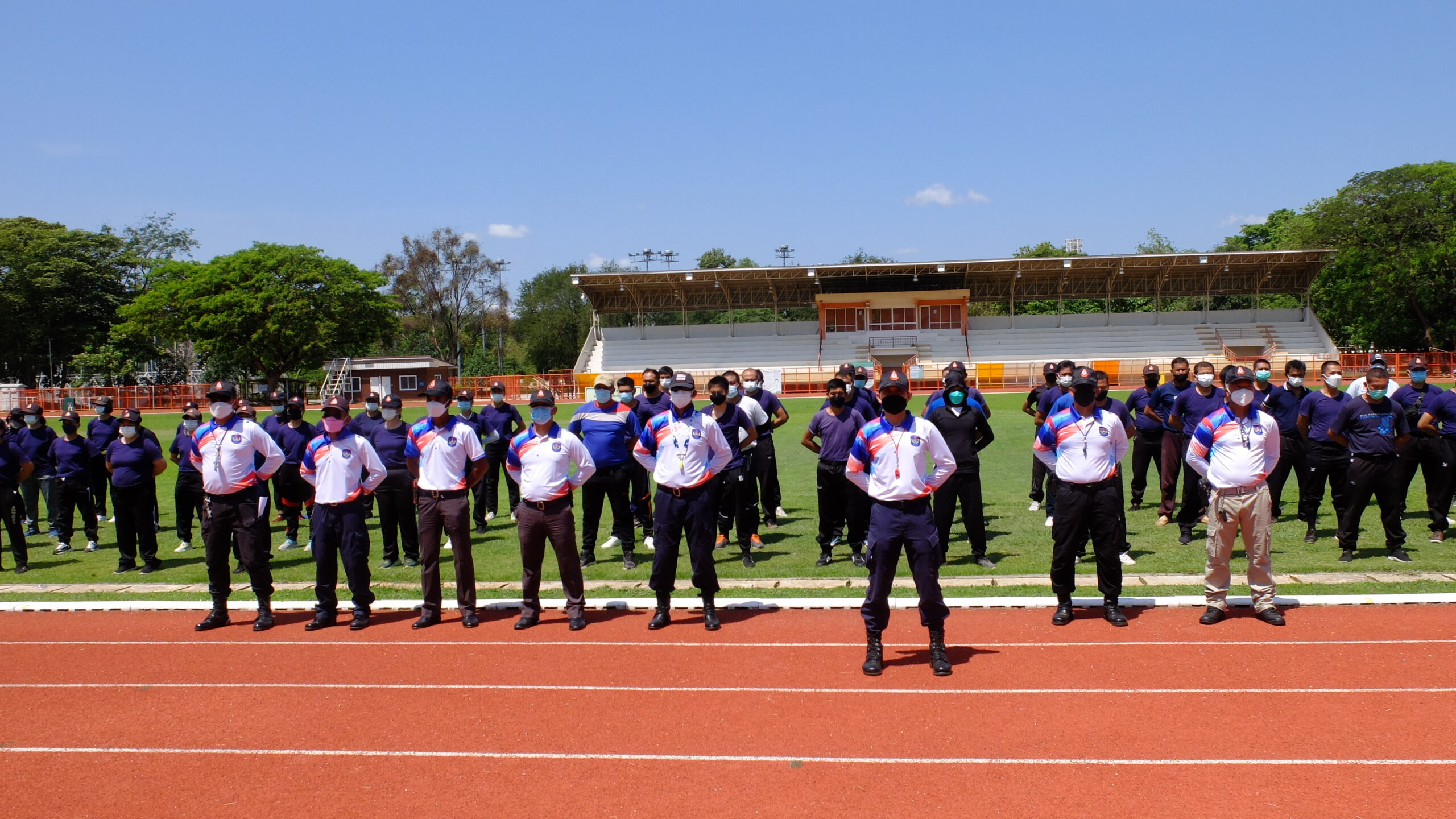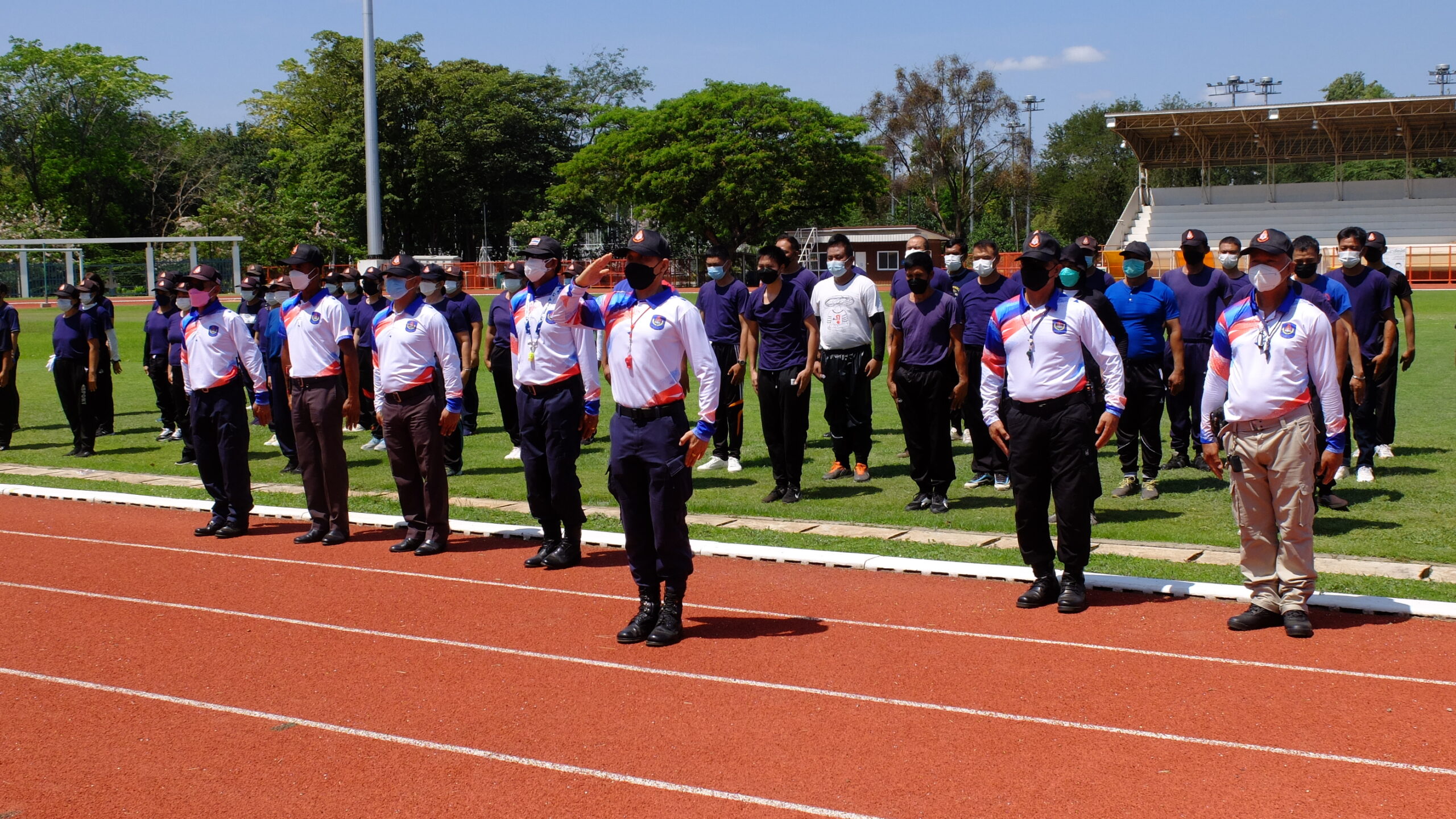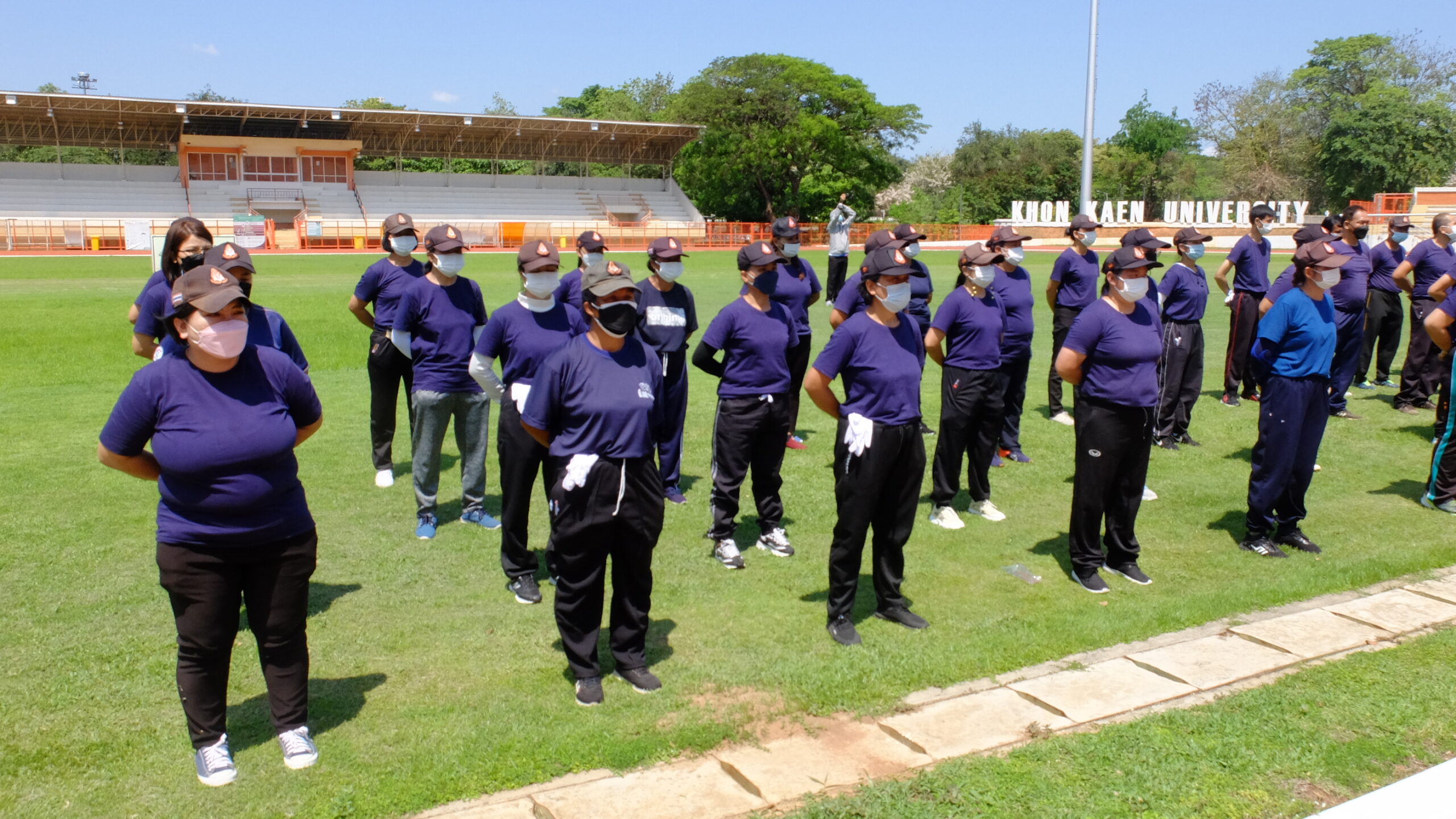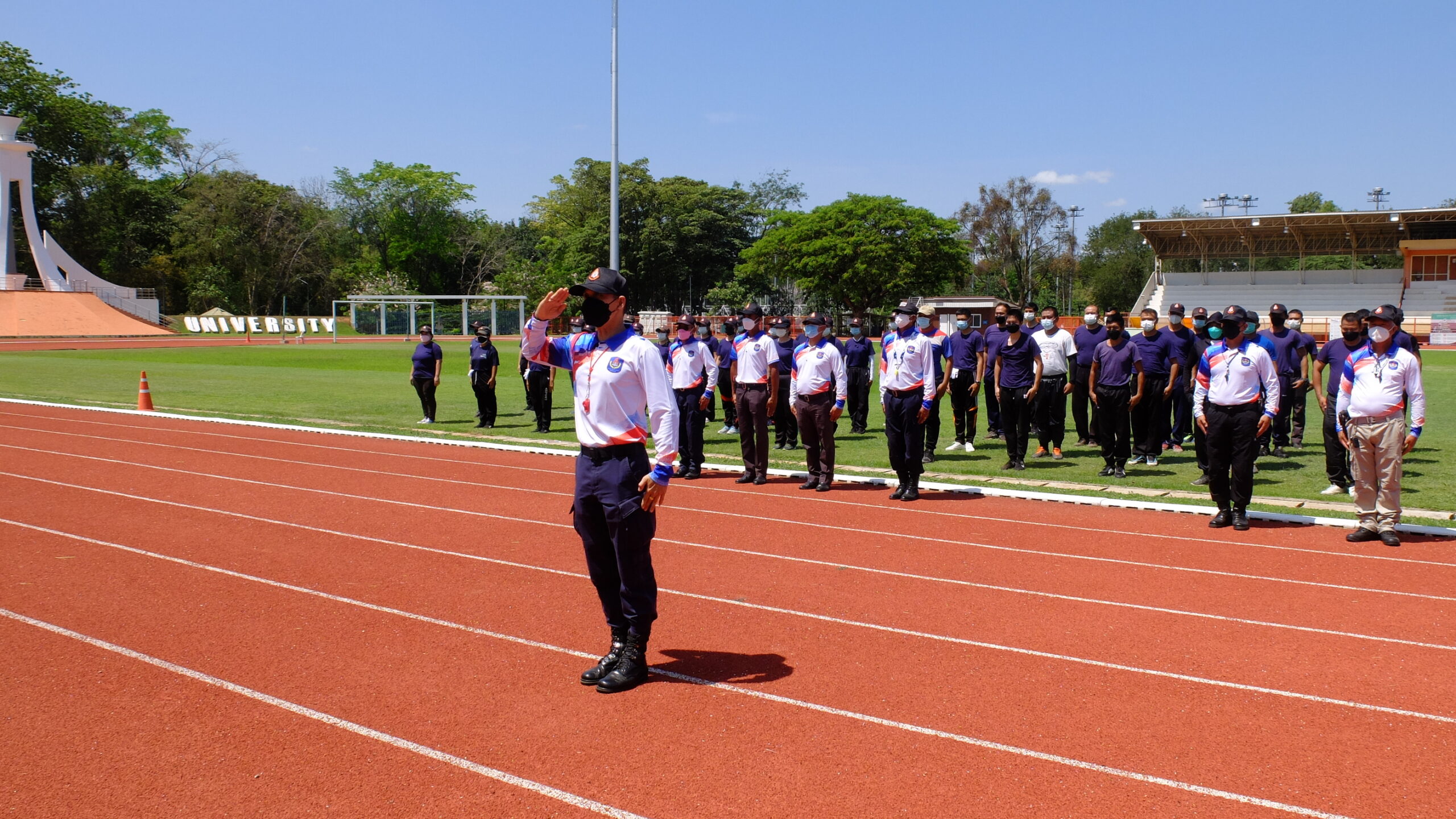 วันที่ 31 มีนาคม 2565 เวลา 08.00-12.00 น. ณ สนามกีฬา 50 ปี มหาวิทยาลัยขอนแก่น กองป้องกันและรักษาความปลอดภัย มหาวิทยาลัยขอนแก่น ได้จัดโครงการฝึกทบทวนทักษะการปฏิบัติงาน และทดสอบสมรรถภาพทางด้านร่างกาย (รอบที่ 1) ประจำปีงบประมาณ 2565 ให้แก่เจ้าหน้าที่ผู้ปฏิบัติงาน ตำแหน่งเจ้าหน้าที่รักษาความปลอดภัยชายและหญิงรวม 135 คน โดยมี ผศ. ดร.สมพงษ์ สิทธิพรหม ผู้ช่วยอธิการบดีฝ่ายรักษาความปลอดภัย ให้เกียรติเป็นประธานกล่าวให้โอวาทและกล่าวเปิดโครงการ พร้อมด้วย คุณ นายเกษม ภูธรรมะ รักษาการแทนผู้อำนวยการกองป้องกันและรักษาความปลอดภัย หัวหน้างานภายในสังกัด ครูฝึก และเจ้าหน้าที่ร่วมในกิจกรรมเป็นจำนวนมาก