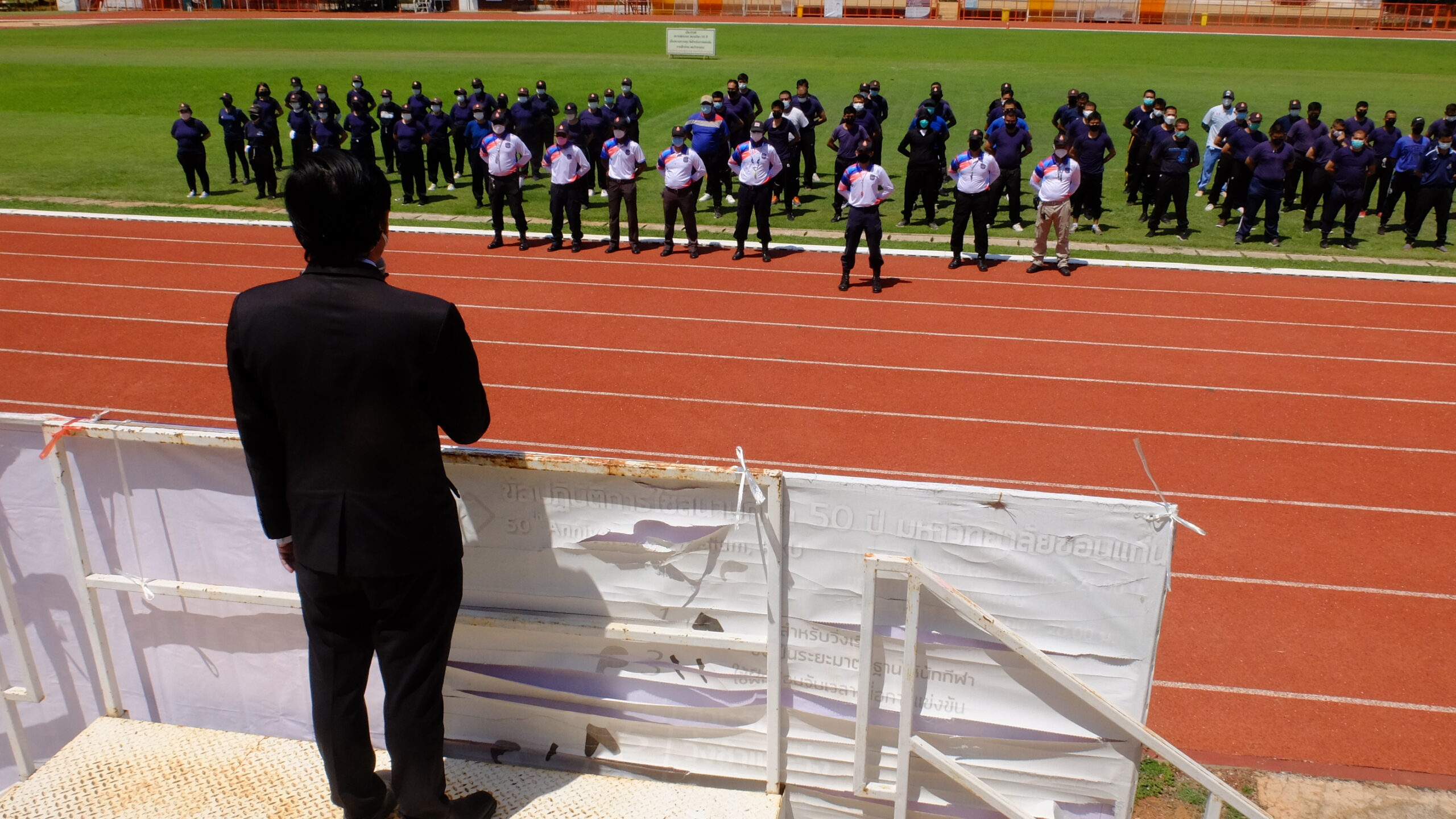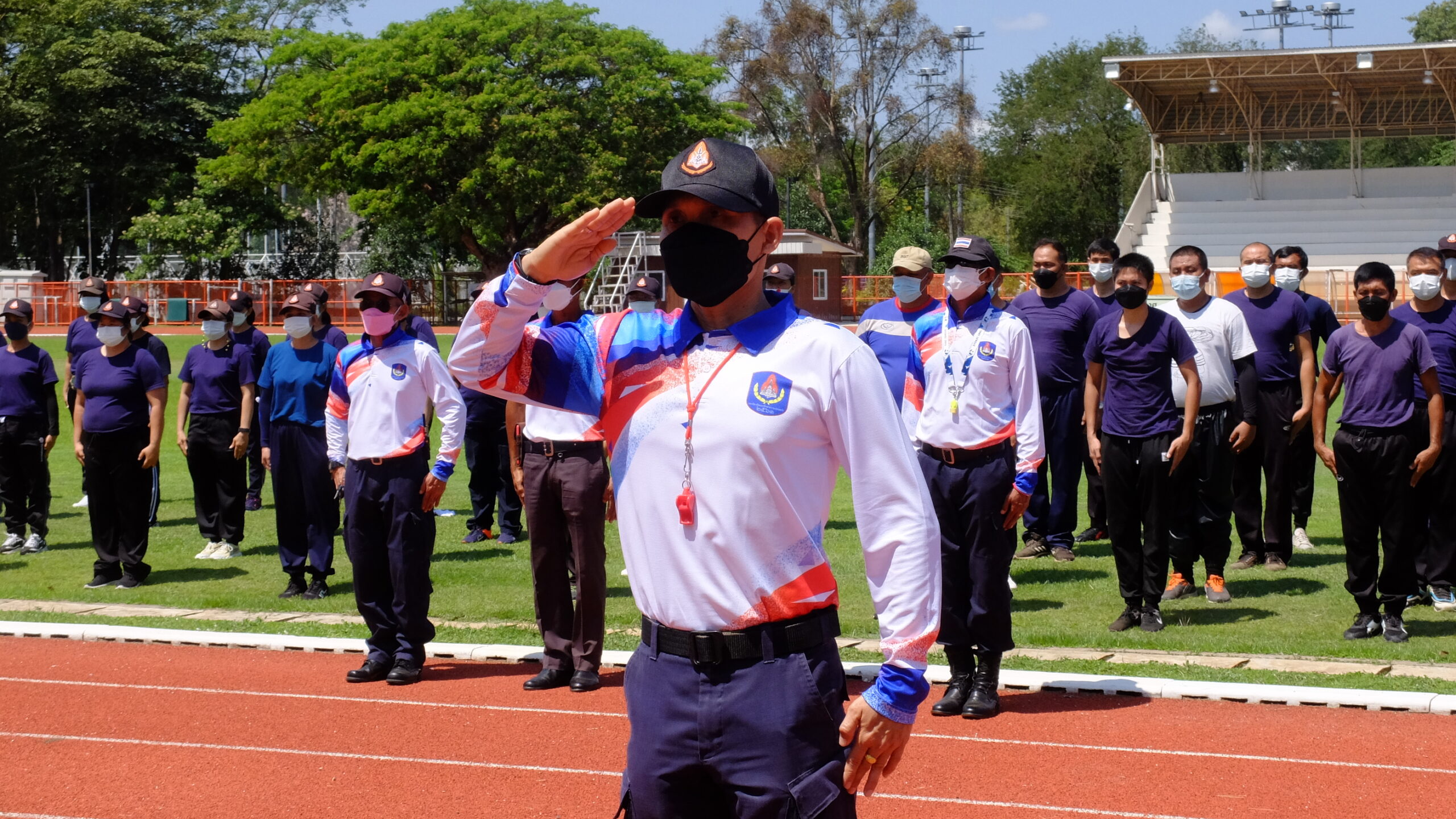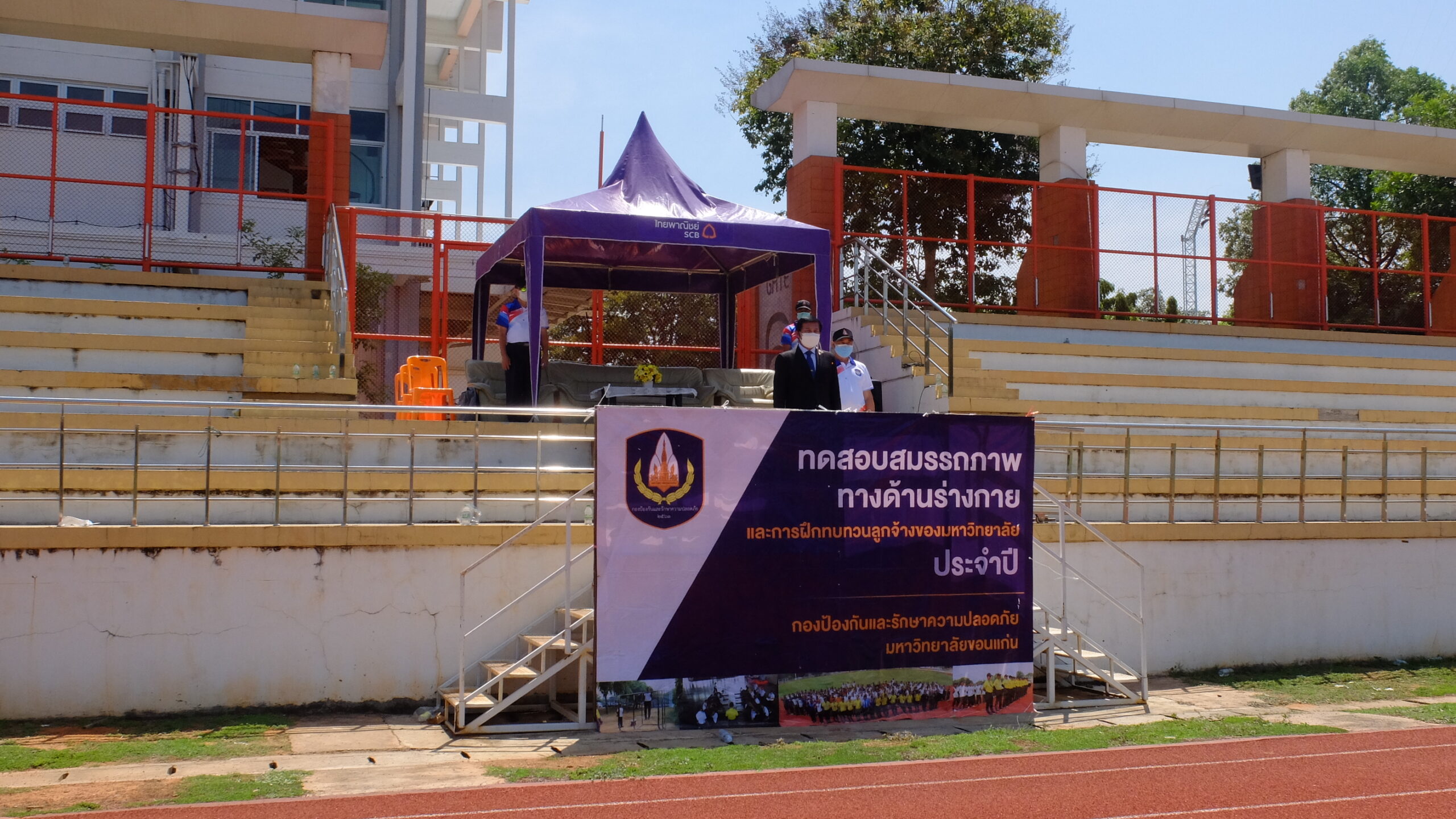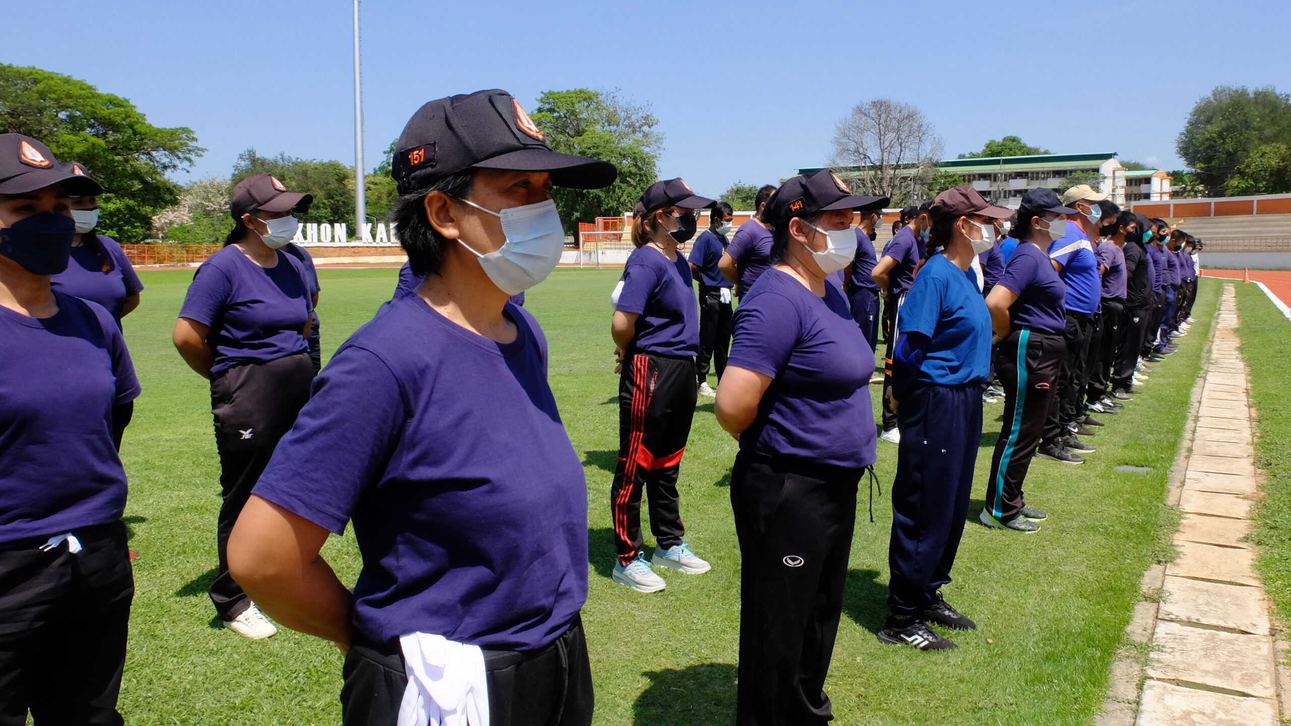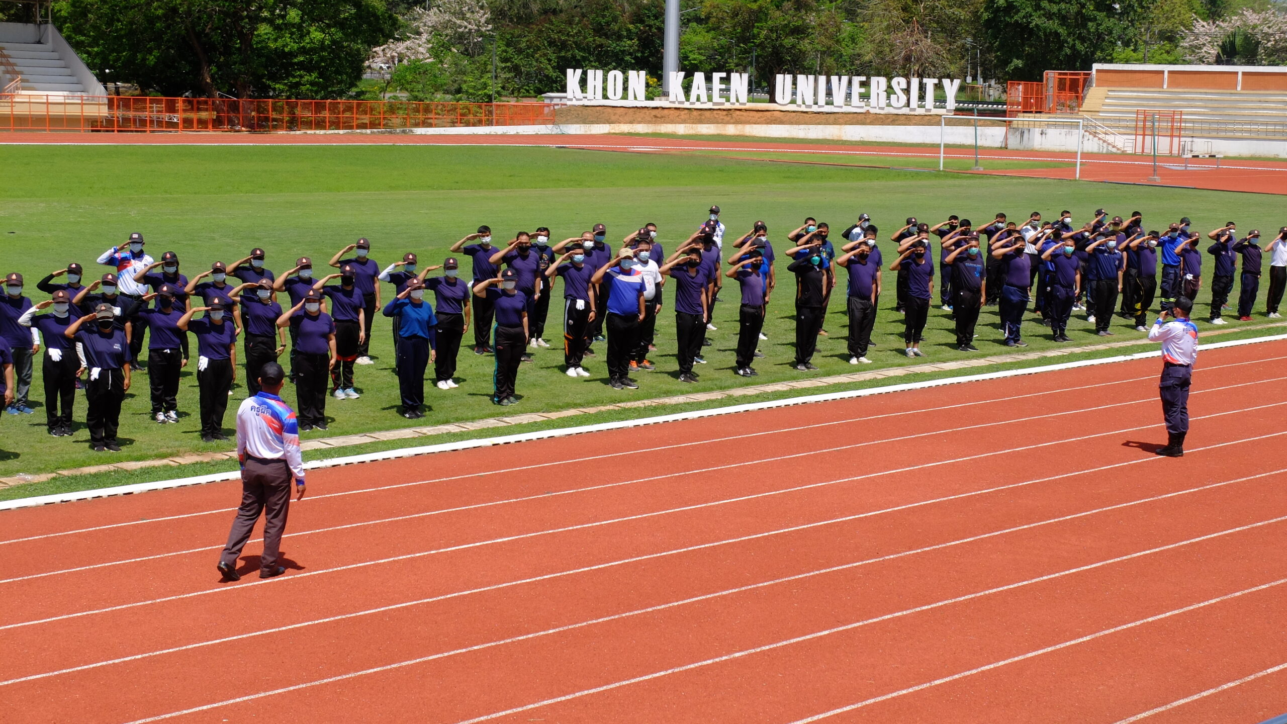 วันที่ 31 มีนาคม 2565 เวลา 08.00-12.00 น. ณ สนามกีฬา 50 ปี มหาวิทยาลัยขอนแก่น กองป้องกันและรักษาความปลอดภัย มหาวิทยาลัยขอนแก่น ได้จัดโครงการฝึกทบทวนทักษะการปฏิบัติงาน และทดสอบสมรรถภาพทางด้านร่างกาย (รอบที่ 1) ประจำปีงบประมาณ 2565 ให้แก่เจ้าหน้าที่ผู้ปฏิบัติงาน ตำแหน่งเจ้าหน้าที่รักษาความปลอดภัยชายและหญิงรวม 135 คน โดยมี ผศ. ดร.สมพงษ์ สิทธิพรหม ผู้ช่วยอธิการบดีฝ่ายรักษาความปลอดภัย ให้เกียรติเป็นประธานกล่าวให้โอวาทและกล่าวเปิดโครงการ พร้อมด้วย คุณ นายเกษม ภูธรรมะ รักษาการแทนผู้อำนวยการกองป้องกันและรักษาความปลอดภัย หัวหน้างานภายในสังกัด ครูฝึก และเจ้าหน้าที่ร่วมในกิจกรรมเป็นจำนวนมาก