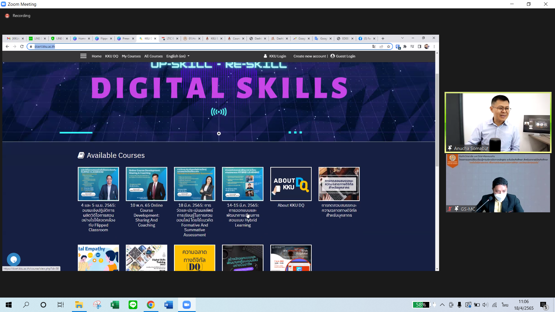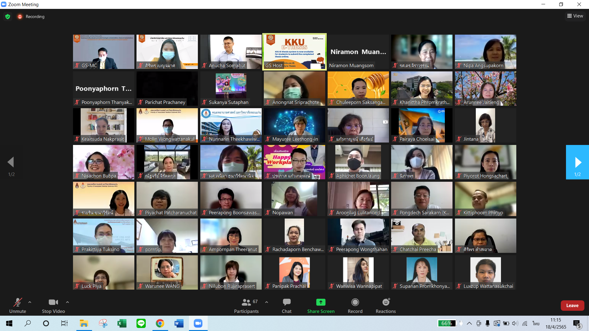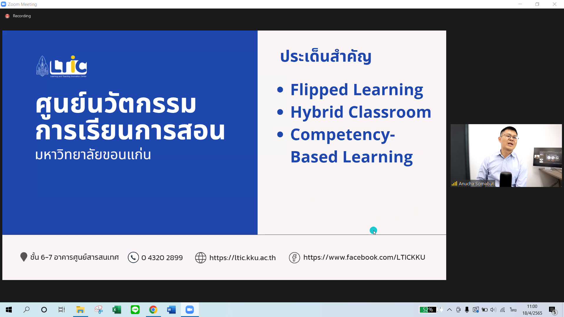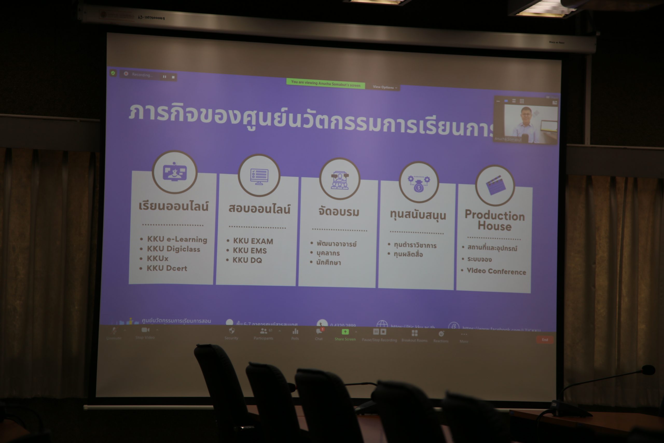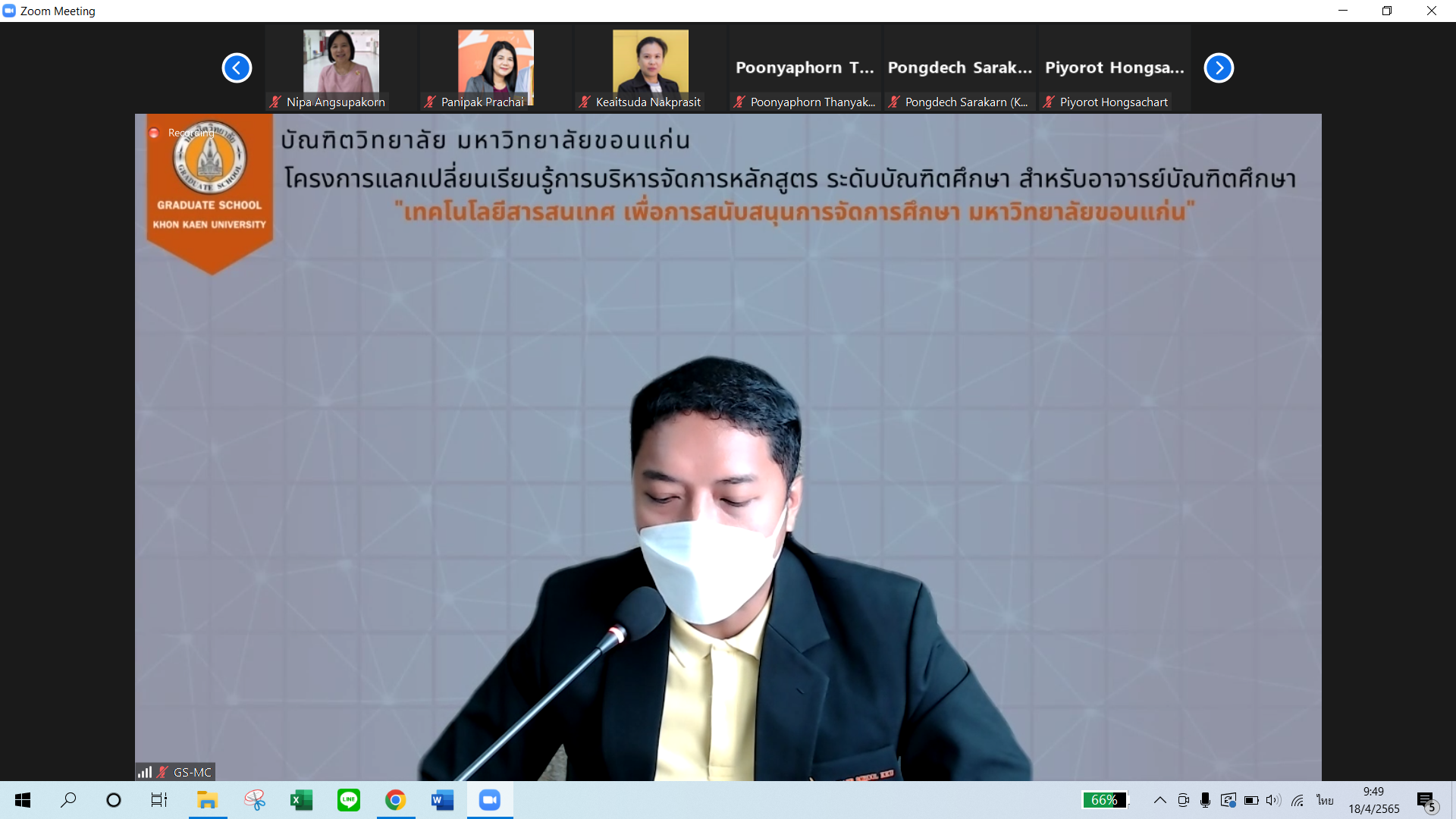 บัณฑิตวิทยาลัย มหาวิทยาลัยขอนแก่น จัดโครงการแลกเปลี่ยนเรียนรู้ การบริหารจัดการหลักสูตร ระดับบัณฑิตศึกษา สำหรับอาจารย์บัณฑิตศึกษา วันจันทร์ที่ 18 เมษายน 2565 เวลา 09.00 – 12.00 น. ผ่านระบบออนไลน์ Zoom ศ.ดร. สุรศักดิ์ วงศ์รัตนชีวิน คณบดีบัณฑิตวิทยาลัย กล่าวเปิดงาน วิทยากรโดย ผศ.ดร.อนุชา โสมาบุตร รักษาการผู้อำนวยการศูนย์นวัตกรรมการเรียนการสอน มหาวิทยาลัยขอนแก่น บรรยายเรื่อง เทคโนโลยีสารสนเทศ เพื่อการสนับสนุนการจัดการศึกษา มหาวิทยาลัยขอนแก่น เพื่อพัฒนาหลักสูตรและปรับรูปแบบการจัดการเรียนการสอนให้ทันตามความต้องการของตลาดงานและการพัฒนาประเทศ เพิ่มขีดความสามารถในการแข่งขัน พร้อมทั้งแลกเปลี่ยนเรียนรู้ ปัญหาและแนวทางแก้ไขปัญหาในเรื่องการบริหารจัดการศึกษาระดับบัณฑิตศึกษา เพื่อให้การบริหารจัดการศึกษาระดับบัณฑิตศึกษามีประสิทธิภาพและประสิทธิผลมากยิ่งขึ้น