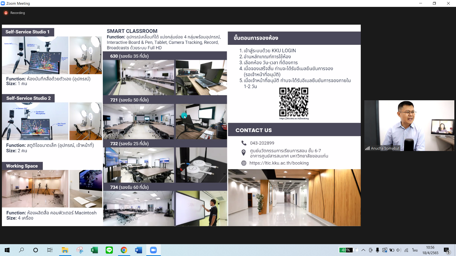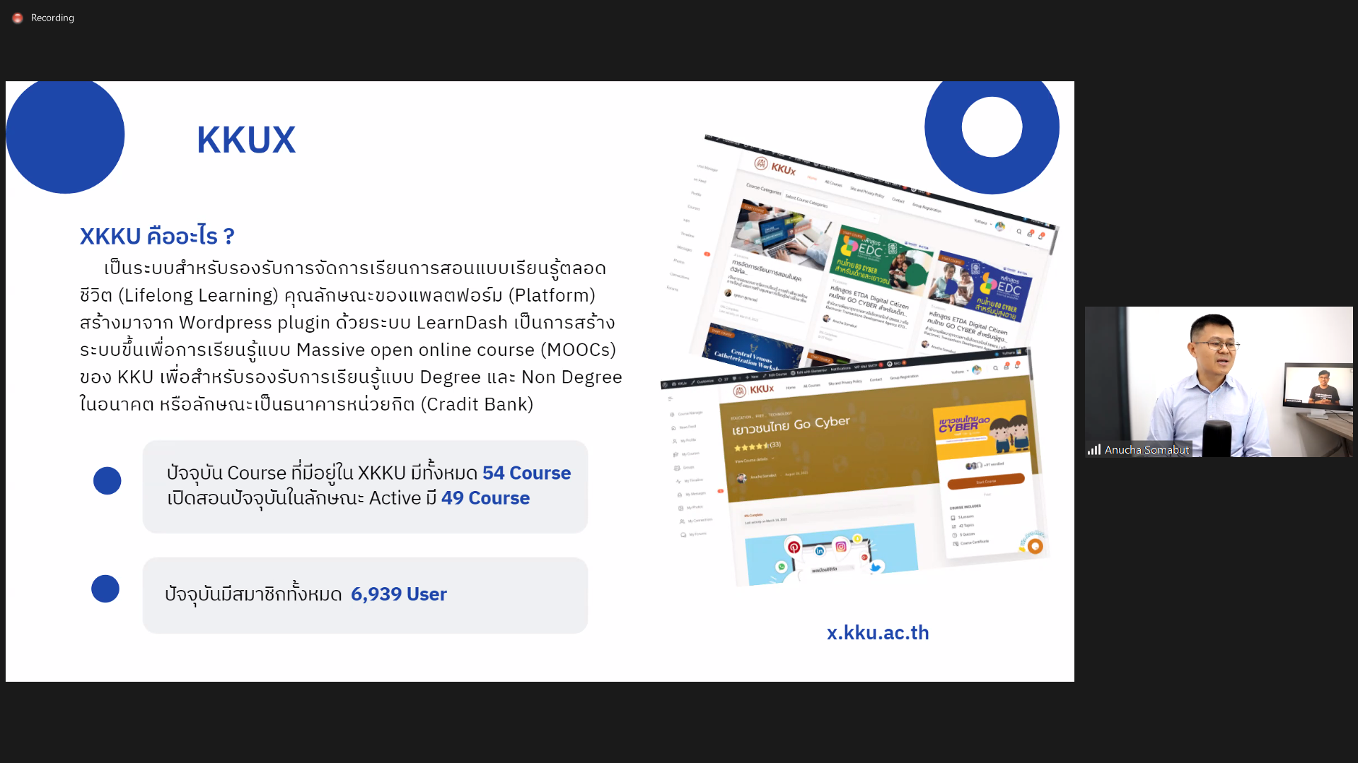 วิทยากรบรรยายหัวข้อ ระบบเทคโนโลยีดิจิทัลที่สนับสนุนการจัดการเรียน การสอนออนไลน์ ระบบเทคโนโลยีที่สนับสนุนการสอบออนไลน์ KKU Production House สำหรับสนับสนุน การผลิตบทเรียนและสื่อดิจิทัล การอบรมและพัฒนาอาจารย์ เพื่อเสริมศักยภาพ การจัดการเรียนการสอน มหาวิทยาลัยขอนแก่นได้สนับสนุนระบบเทคโนโลยีสารสนเทศเพื่อสนับสนุนการเรียนการสอน เช่น Office365 เข้าใช้งานได้ที่ https://i.kku.ac.th หรือ www.office.com โปรแกรม Zoom KKU Software License Reservation https://app-reserve.kku.ac.th UP-SKILL – RE-SKILL Digital Skills https://dcert.kku.ac.th/ ซึ่งมหาวิทยาลัยขอนแก่นพร้อมสนับสนุนเทคโนโลยีต่างๆสำหรับ คณาจารย์ บุคลากรและนักศึกษา สำนักเทคโนโลยีดิจิทัล โทรภายใน มข. 42001, 46123-4 Email: bit@kku.ac.th