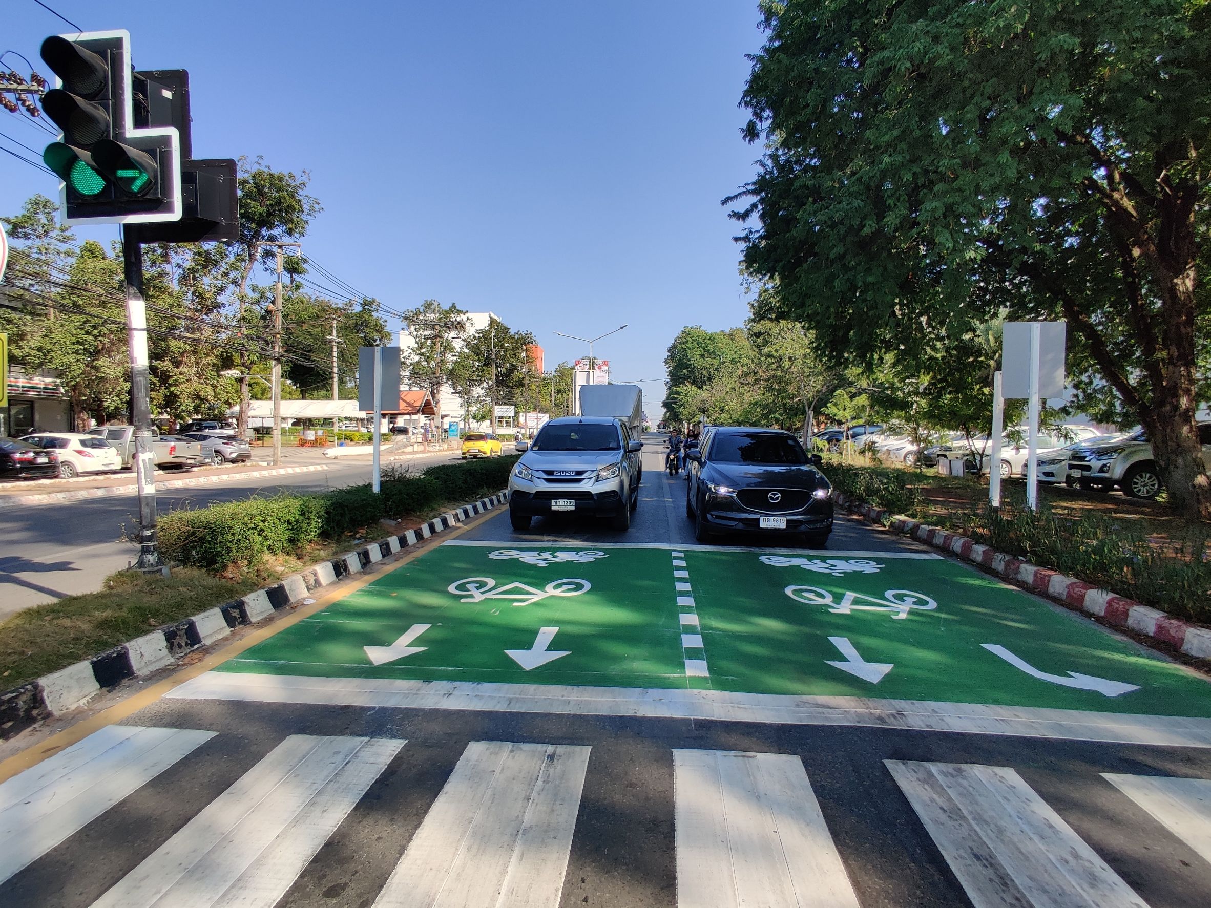 มข. โดยฝ่ายรักษาความปลอดภัย ร่วมกับคณะวิจัยภาควิชาวิศวกรรมโยธา คณะวิศวกรรมศาสตร์ นำ Bike Box มาใช้เพื่อความปลอดภัยในจราจร 18/12/2020 20:50 น.