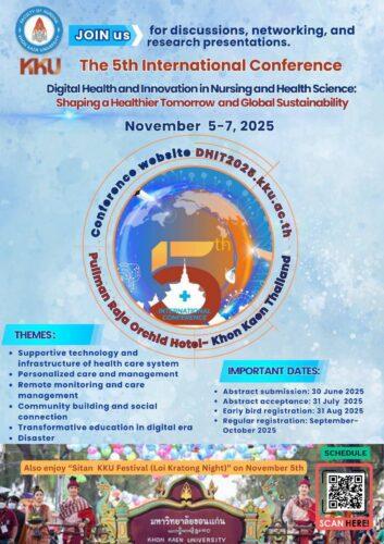 คณะพยาบาลศาสตร์ มหาวิทยาลัยขอนแก่น ขอเชิญประชุมวิชาการนานาชาติ ครั้งที่ 5 เรื่อง “Digital Health and Innovation in Nursing and Health Science: Shaping a Healthier Tomorrow and Global Sustainability” 16/11/2024 18:59 น.