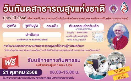 ให้บริการทางทันตกรรมฟรี! ในงานทันตสาธารณสุขแห่งชาติ ประจำปี 2568 (วันเดียวเท่านั้น) 12/10/2025 9:37 น.