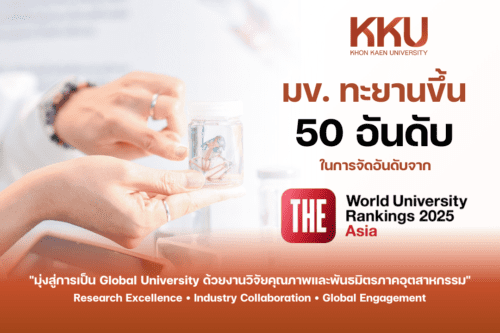 THE Asia University Rankings 2025 มข. พุ่งขึ้น 50 อันดับ แสดงศักยภาพด้านวิจัยและความร่วมมือกับภาคอุตสาหกรรม พร้อมก้าวสู่การเป็น Global University 01/05/2025 17:23 น.