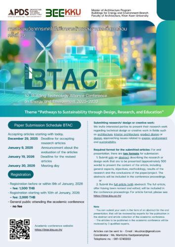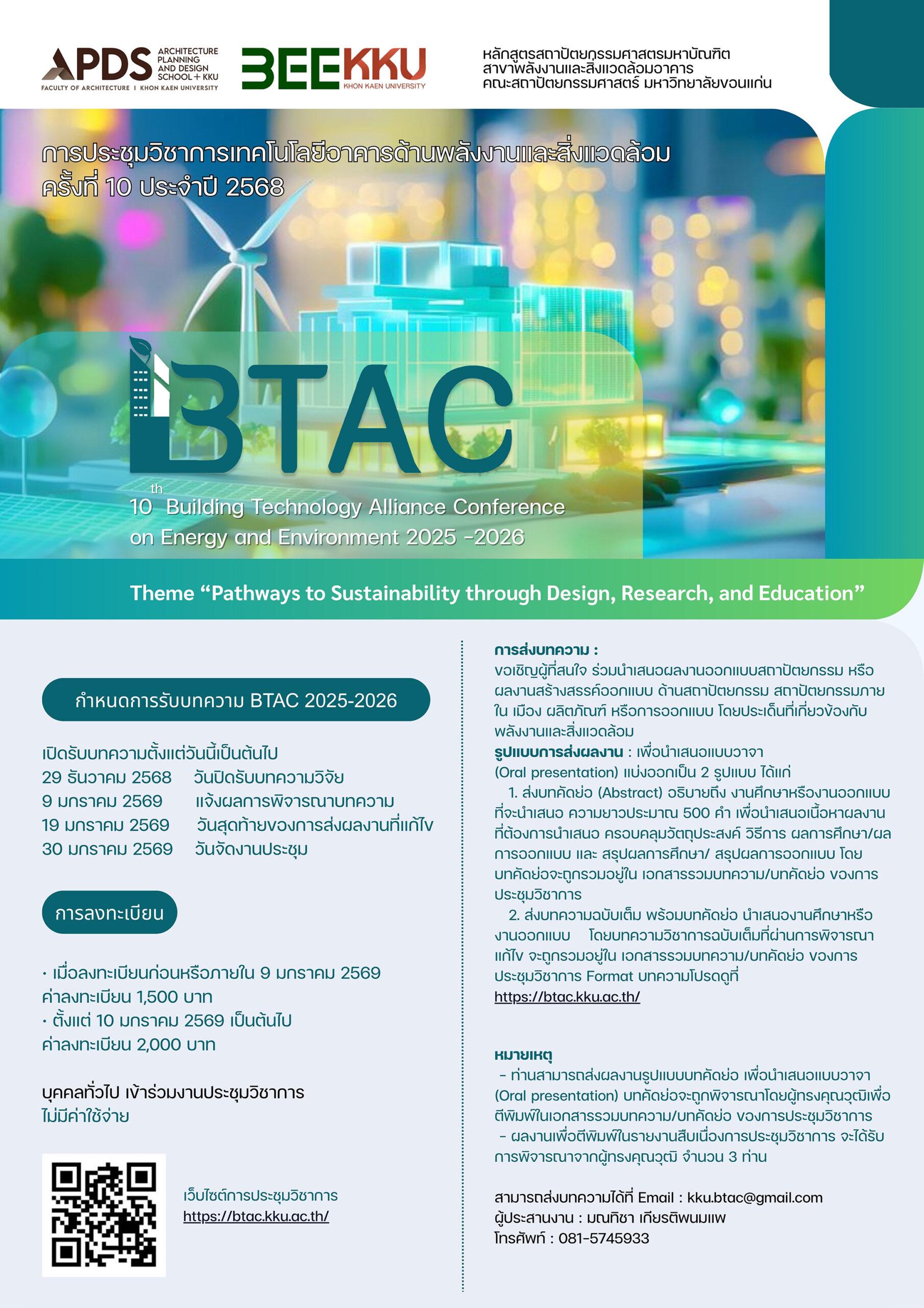 คณะสถาปัตกรรมศาสตร์ มหาวิทยาลัยขอนแก่น จัดงานการประชุมวิชาการเทคโนโลยีอาคารด้านพลังงานและสิ่งแวดล้อม ครั้งที่ 10 ประจำปี 2568
