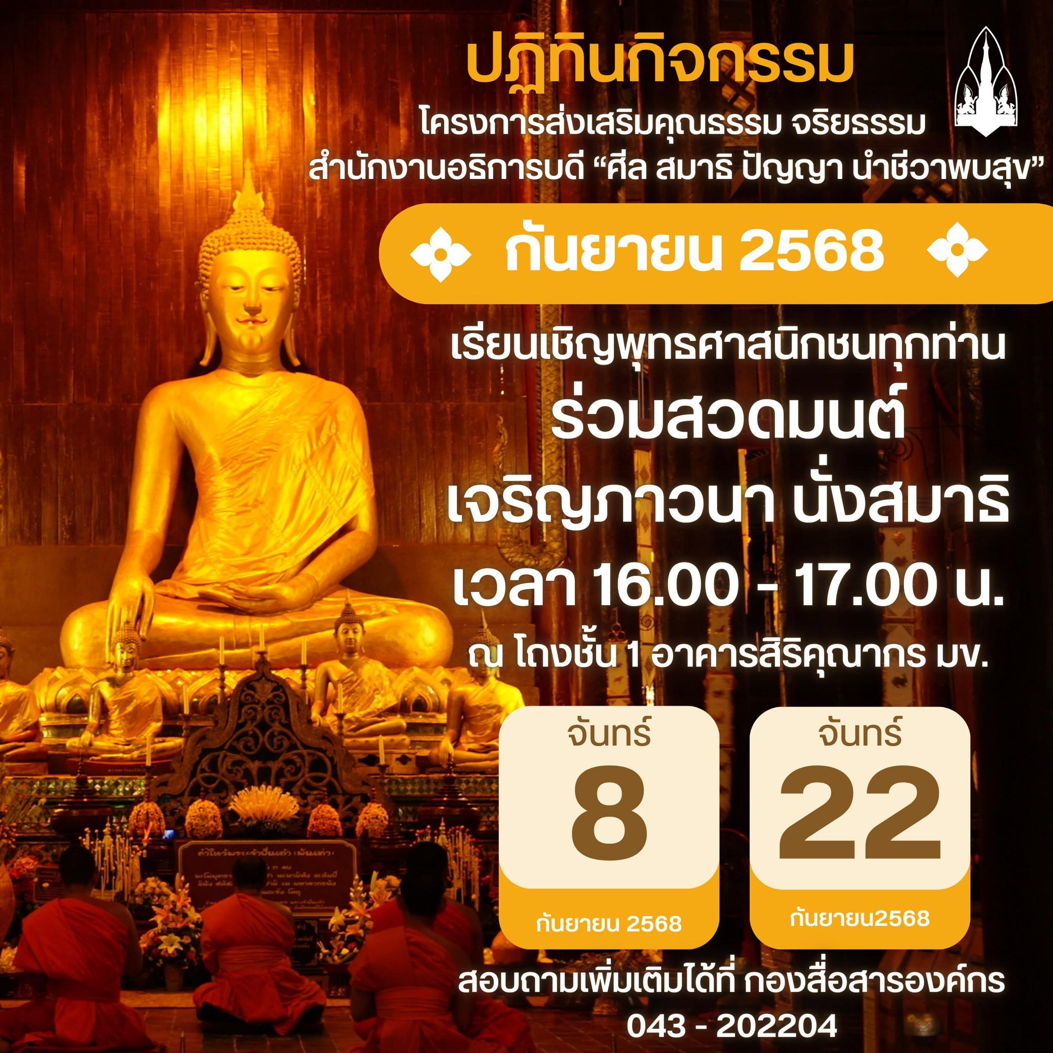 กิจกรรมสวดมนต์ เจริญภาวนา กับ โครงการส่งเสริมคุณธรรม จริยธรรม สำนักงานอธิการบดี