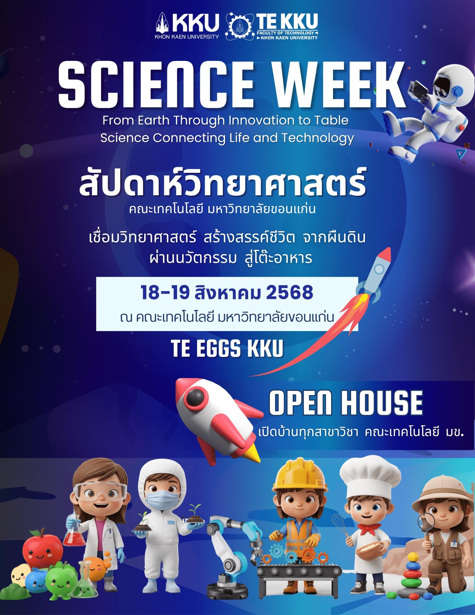 งาน “สัปดาห์วิทยาศาสตร์” คณะเทคโนโลยี มหาวิทยาลัยขอนแก่น ภายใต้แนวคิด “เชื่อมวิทยาศาสตร์ สร้างสรรค์ชีวิต จากผืนดิน ผ่านนวัตกรรม สู่โต๊ะอาหาร”